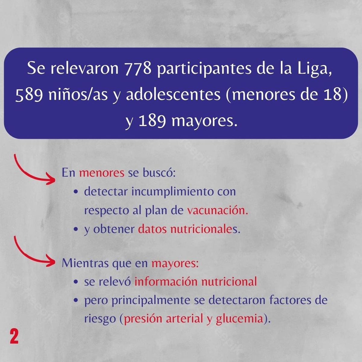 El análisis de los datos de los adultos que participaron del estudio también contó con aspectos que deben ser abordados. El estudio recolectó información de 189 mayores.