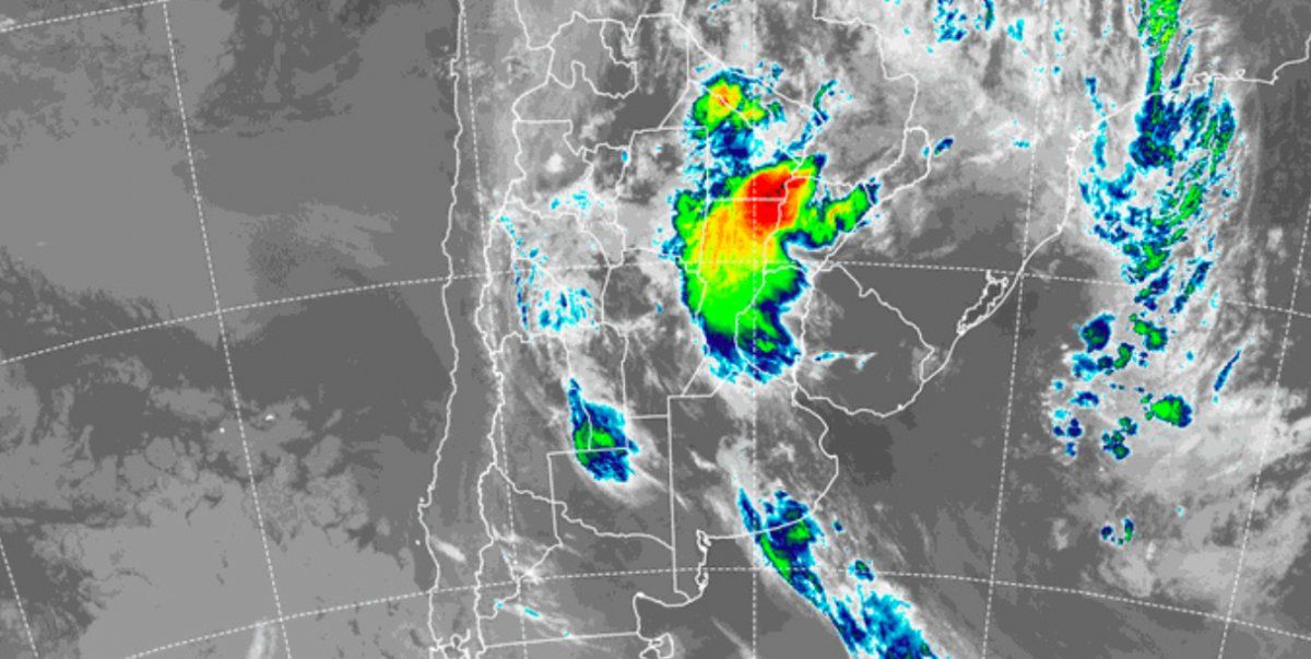 La imagen satelital del Servicio Meteorológico Nacional (SMN) muestra que la tormenta es severa sobre todo en el noreste santafesino y en el sur de la provincia de Chaco.