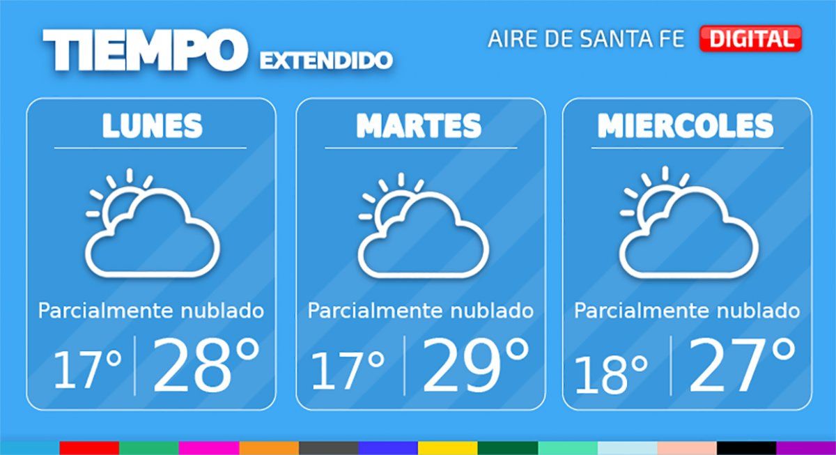 Las temperaturas tendrían poco cambio y se espera una máxima de 28° este lunes en la ciudad de Santa Fe.