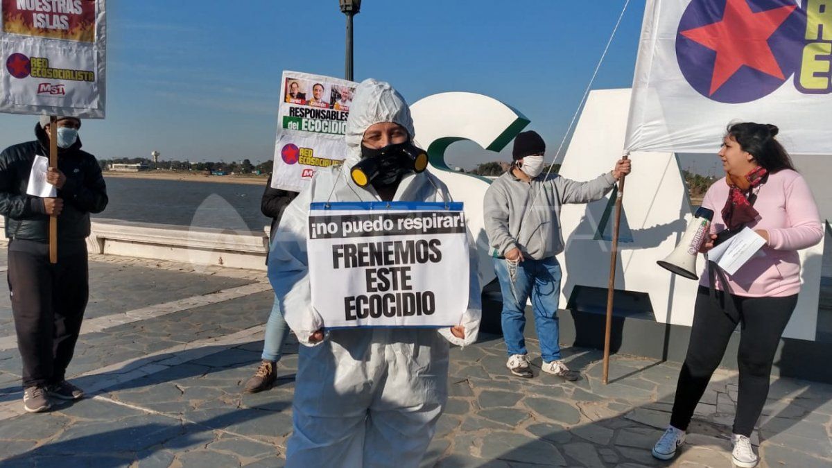 Bajo la consigna "Nuestras vidas valen más que sus ganancias", los manifestantes aseguraron que la situación que atraviesa a las provincias de Santa Fe y Entre Ríos "es similar a la que vivió Brasil con los incendios en el Amazonas y Australia con los incendios forestales".
