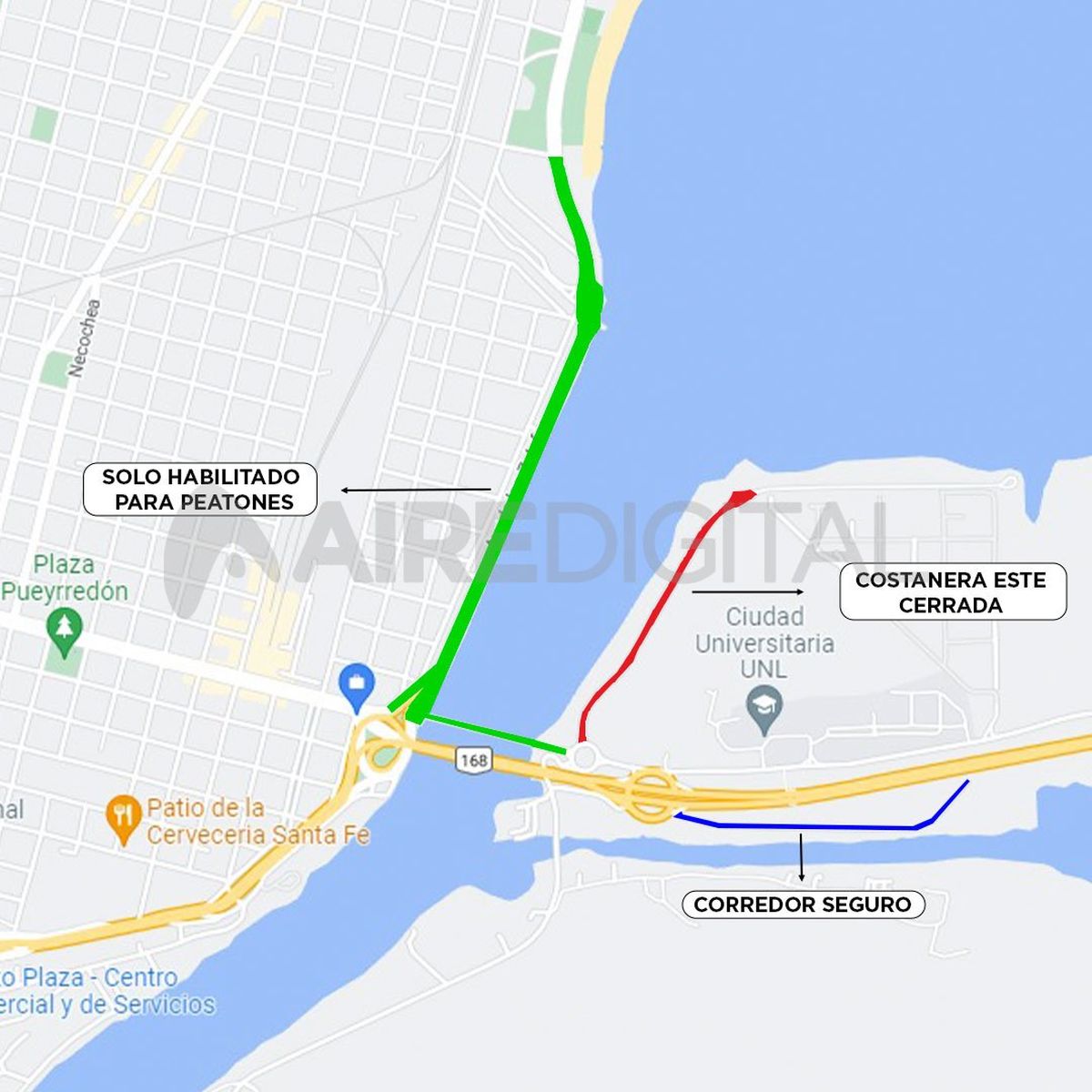 La Costanera Oeste estará cortada para los autos desde las letras corpóreas de Santa Fe hasta calle Calcena. "Este año vamos a modificar un corte. El que era a la altura de Bulevar Muttis (en la zona del Faro), este año lo vamos a hacer a la altura de Calcena para tratar de evitar el ingreso de autos porque hay mucha gente. Va a estar liberado para la gente que viene del norte al sur. Van a tener que hacer desvío por 7 Jefes que va a estar liberado", explicó el funcionario.