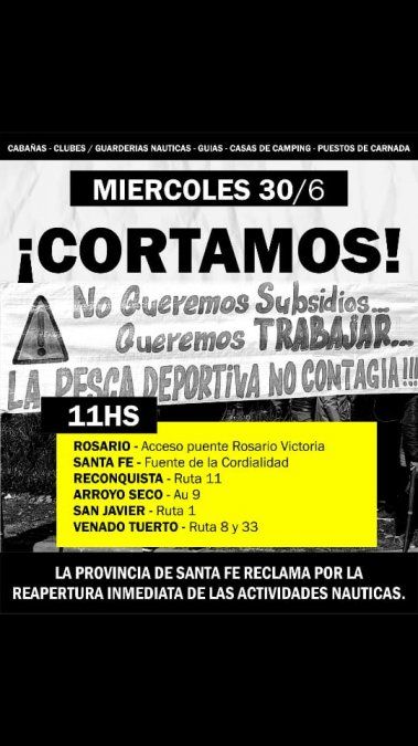 Pecorari aseguró que si la respuesta es negativa, ya tienen programados cortes para el miércoles en toda la provincia de Santa Fe, y aclaró que eso no lo deciden dos personas, sino toda la gente que vive del rubro y que hoy se encuentra afectada.