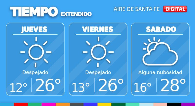El pronóstico del tiempo anuncia para este jueves cielo despejado con temperatura mínima de 12° y máxima de 26° y viento leve del noreste.