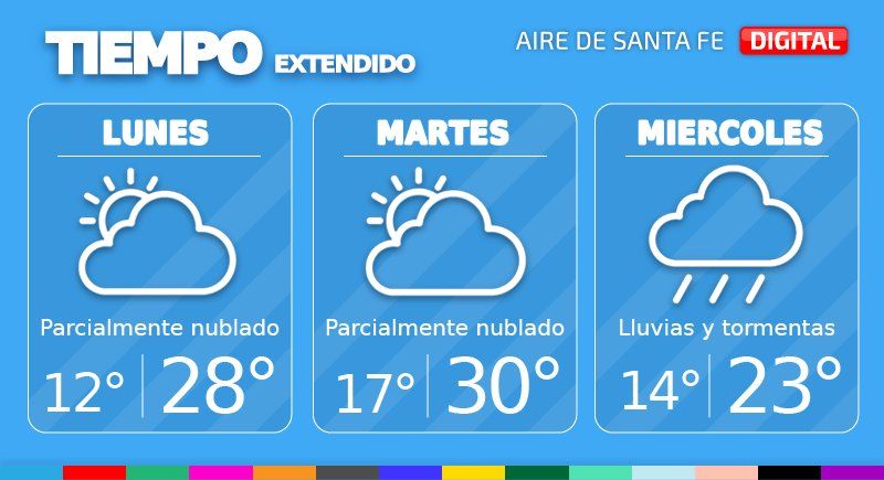 Para el martes el cielo continuará nublado y con condiciones algo inestables, sobre todo hacia la noche. La temperatura mínima será de 17° y la máxima, de 30° con viento leve del este.