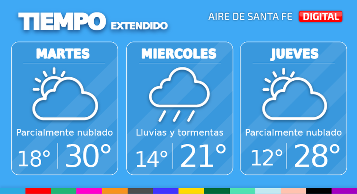 En este escenario, en la ciudad de Santa Fe, el martes el día comenzará con poca nubosidad, pero con probables bancos de niebla, luego con nubosidad en aumento y condiciones inestables hacia la noche. Temperatura mínima de 18°, máxima de 30° y viento leve del este.