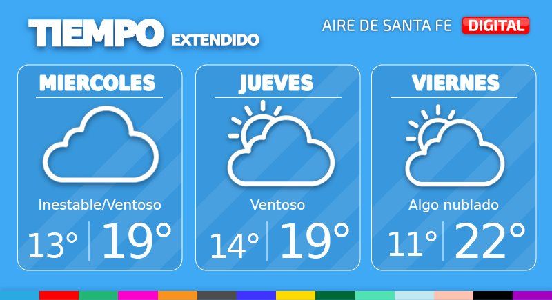 El pronóstico anuncia un miércoles aún algo inestable en la ciudad de Santa Fe con cielo parcial a totalmente cubierto. Habrá ráfagas que pueden superar los 60 km/h, con poca variación de las temperaturas (13° de mínima y 19¨ de máxima) con abundante nubosidad.