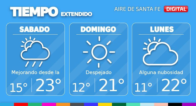 En ese lapso comenzará a ingresar el frente de aire frío a la región, trayendo el mejoramiento de las condiciones desde la tarde. Acompañará un descenso de los valores térmicos y de ráfagas de viento que podrían superar los 35 km/h. La temperatura mínima anunciada para este sábado es de 15° y 23° la máxima.