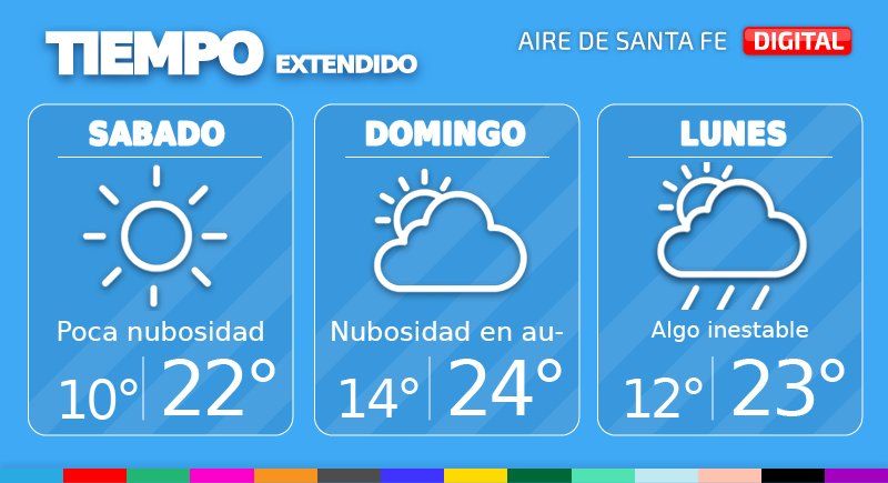 Para el domingo se espera que la nubosidad vaya en aumento y condiciones que desmejorarán así hacia la noche. La temperatura ascenderá más, con mínima de 14° y máxima de 24°.