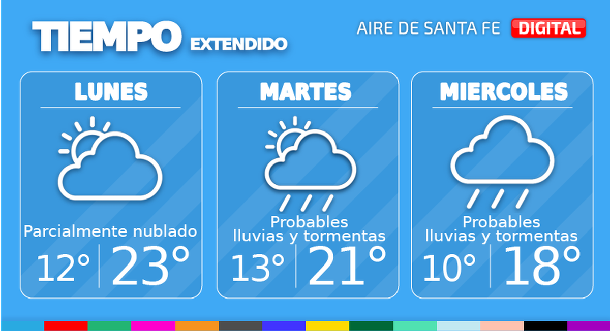 El miércoles continuarán las condiciones inestables, esperando lluvias y algunas tormentas aisladas en las primeras horas, pero mejorando hacia la tarde. Temperatura mínima de 10°, máxima de 18° y viento leve a moderado del sur con algunas ráfagas de mayor intensidad. Todos los días con probabilidad de bancos de niebla en las primeras horas.