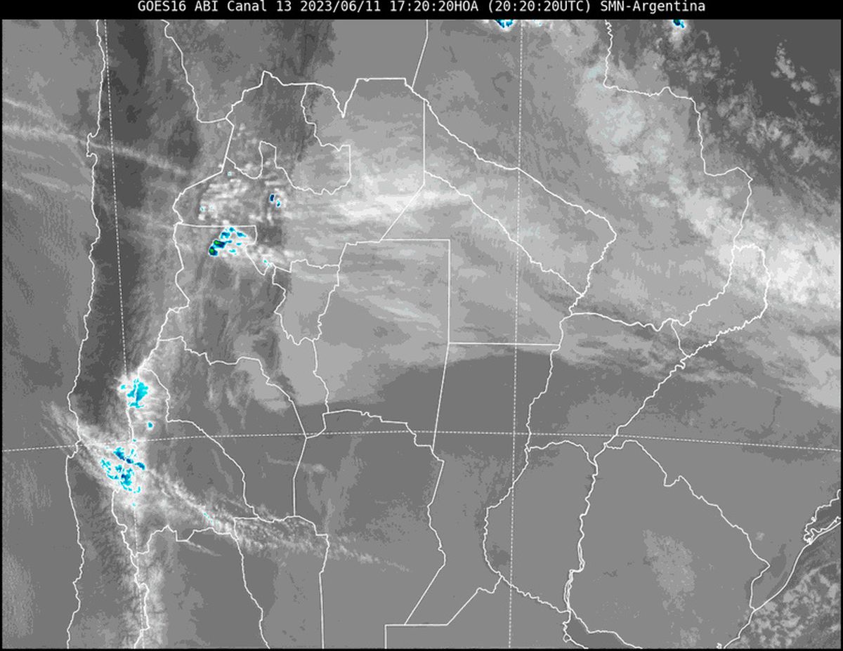 En la imagen satelital se observa el cielo del centro de la provincia de Santa Fe totalmente despejado. Esta situación favorecerá, en caso de que el viento quede en calma, la formación de heladas en la madrugada. Esto se debe al ingreso de aire frío de origen polar que hizo descender las temperaturas a valores acordes a la época del año, como estaba previsto.