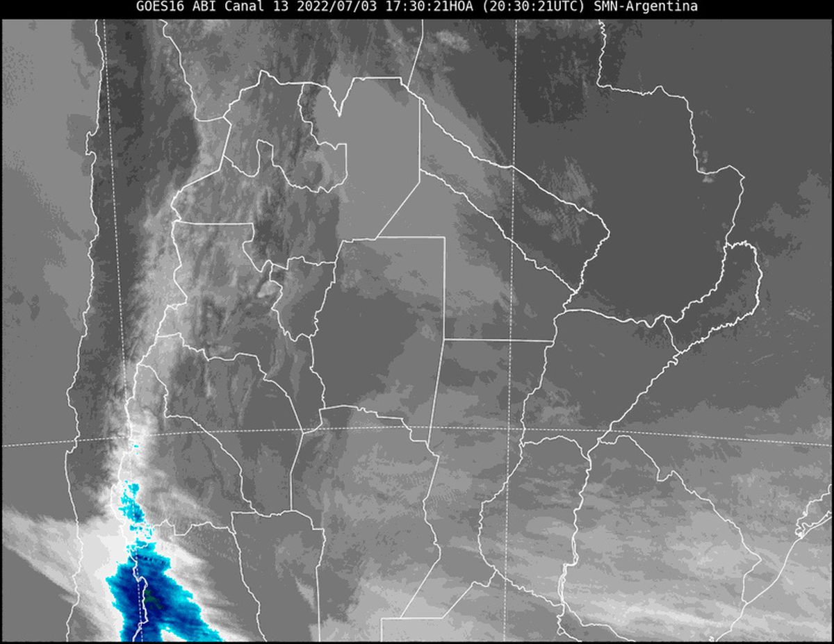 En la imagen satelital se observa el ingreso de nubosidad desde el norte, cubriendo parcialmente nuestra provincia. Esta nubosidad acompaña aire cálido y húmedo en altura, mientras que en superficie predomina el ingreso de aire más fresco, pero también húmedo desde el sudeste. Esta combinación podría causar algunas lloviznas en la madrugada, que se darían en forma aislada.