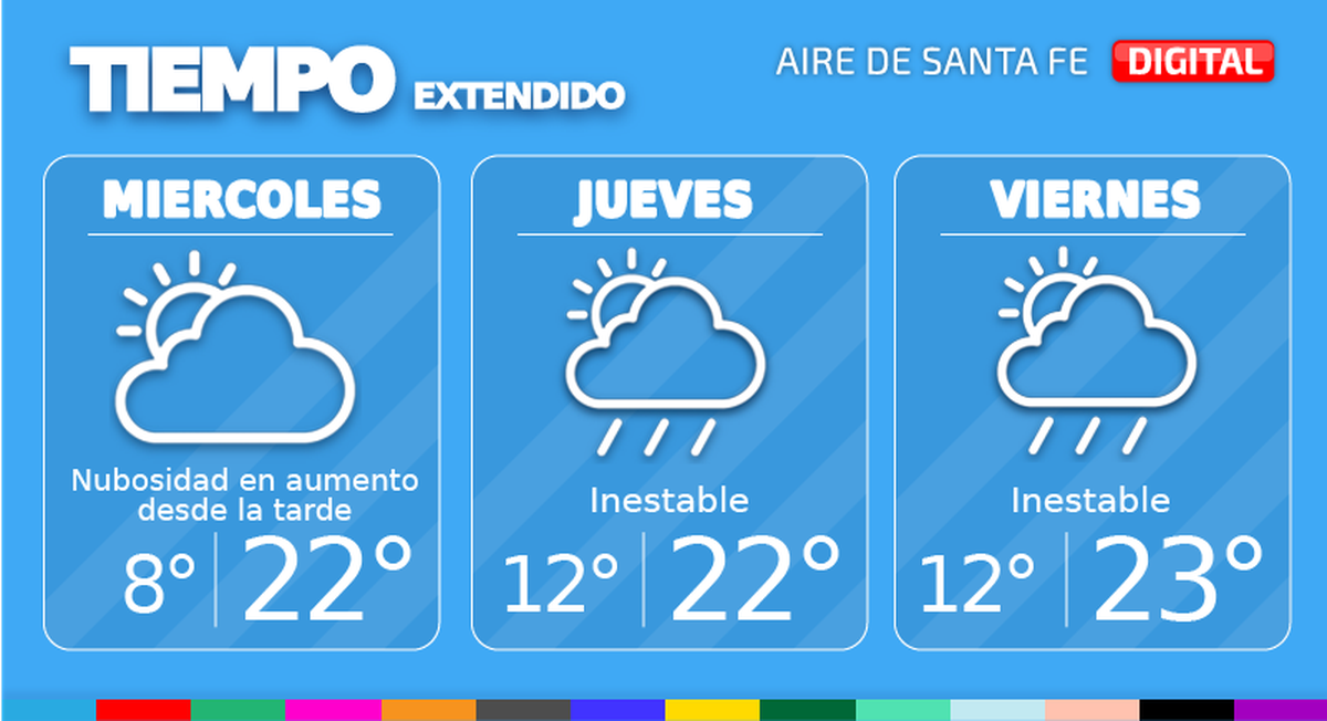 El martes llegó con temperaturas agradables a Santa Fe. El miércoles, Día del Amigo en la ciudad de Santa Fe, el cielo estará despejado, pero con nubosidad en aumento desde la tarde. Temperatura mínima de 8°, máxima de 22° y viento leve a moderado del noreste.