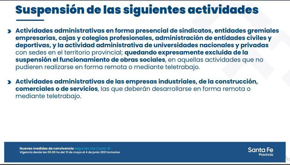 La provincia de Santa Fe vuelve a partir de este lunes a poner en funcionamiento un esquema de aperturas parciales de actividades, en sintonía del decreto provincial que regía antes de los últimos anuncios del presidente Alberto Fernández.