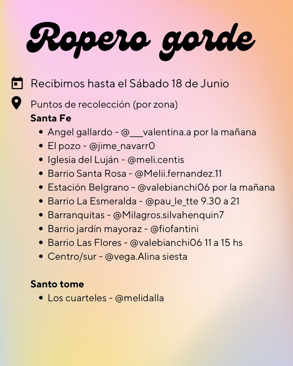 Este año, junto a la Juntada Gorda Santa Fe, realizan nuevamente esta campaña. Reciben ropa en los siguientes locales comerciales: