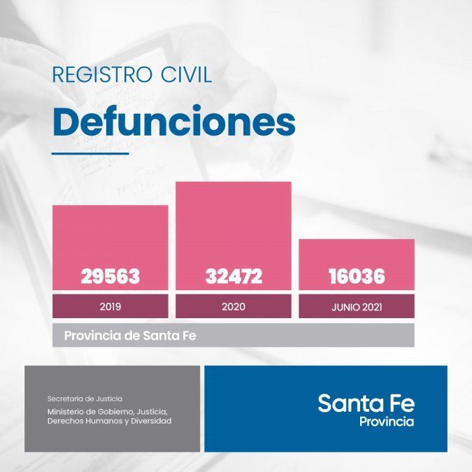 Desde enero a junio de este año se tramitaron 16036 defunciones, el año pasado se registraron 32472 trámites mientras que en el 2019 se contabilizaron 29563.
