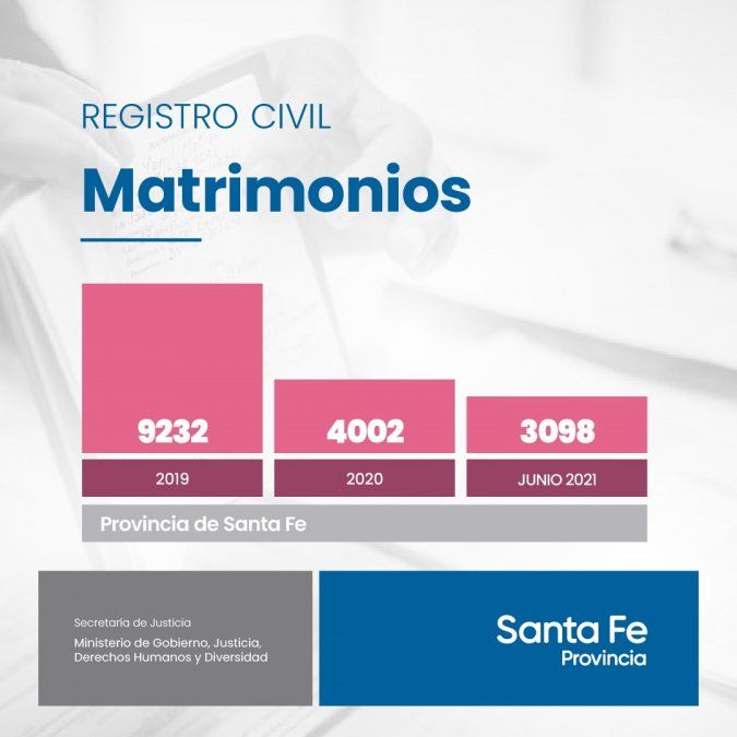 En el primer semestre de este 2021 se tramitaron 3098 matrimonios. La cifra es cercana a la que registró a lo largo de todo el 2020, cuanto se contabilizaron 4002 contra los 9232 del 2019.