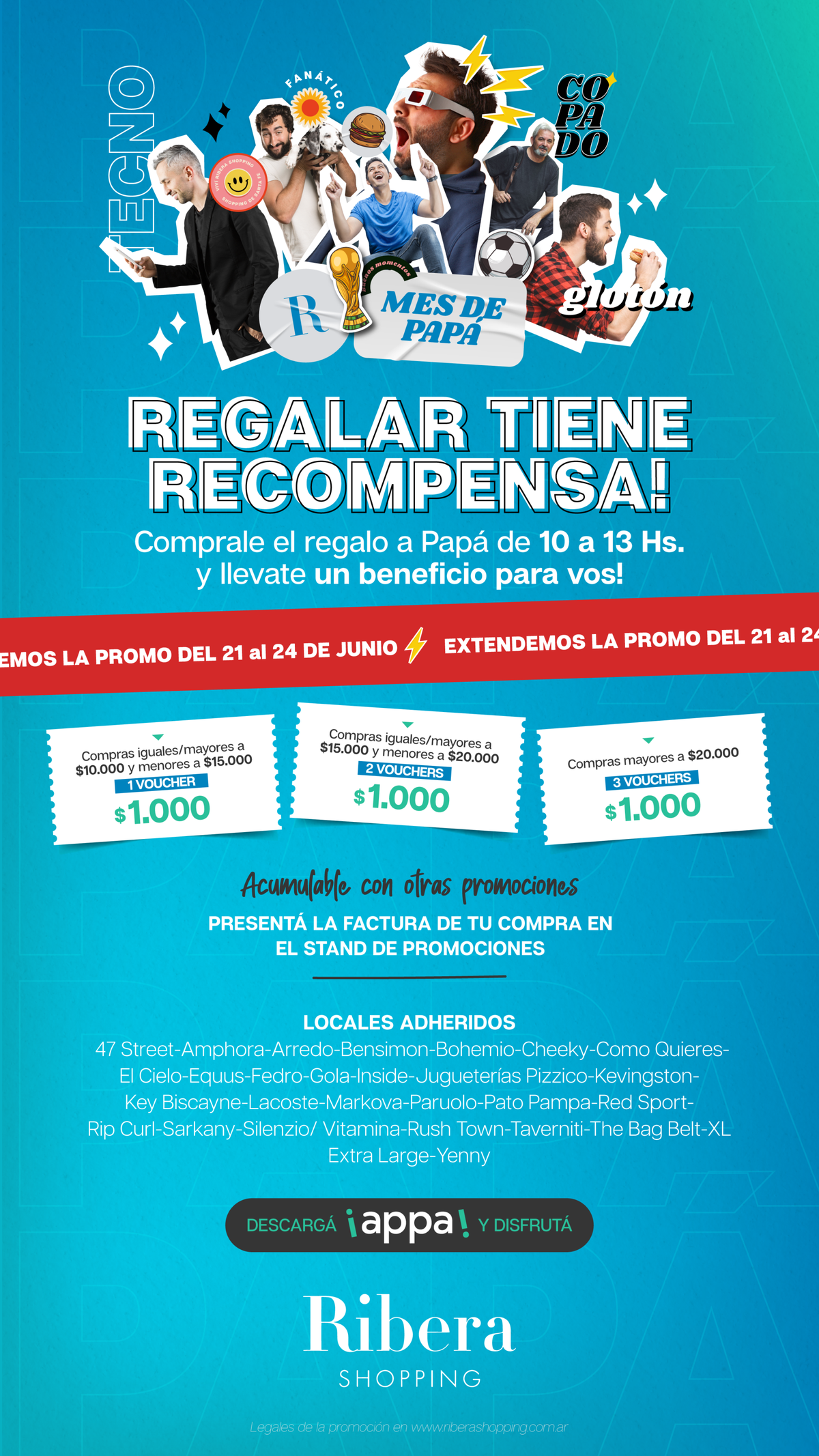 Las ventas del Día del Padre superaron las expectativas de los locales comerciales de Ribera Shopping ubicado en el Dique 1 del Puerto de la ciudad de Santa Fe. Es por ello que desde el centro comercial se decidió extender hasta el sábado 24 de junio la promoción que se había lanzado para la fecha.