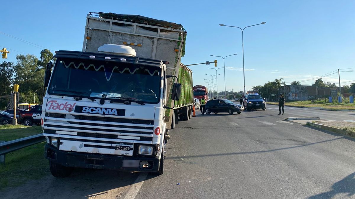 El camión, que transportaba pollos vivos, terminó parcialmente subido al cordón y ocupando parte de la calzada y de la colectora, lo que agravó aún más la situación del tránsito. La presencia del acoplado redujo el espacio disponible para circular, incluso para quienes intentaban desviar por la colectora.