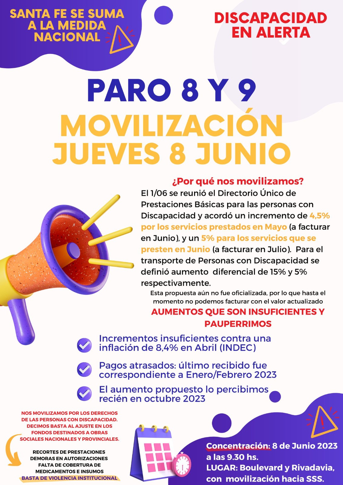 En un comunicado enviado a nivel nacional, los prestadores que atienden a personas con discapacidad expresaron: "Decimos basta de vulnerar derechos, basta de ser rehenes de las obras sociales y peligran las prestaciones básicas para las personas con discapacidad".