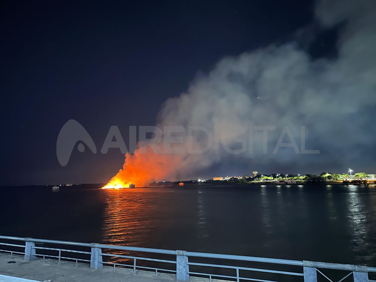 Un incendio de gran magnitud en el medio de la Laguna Setúbal llamó la atención de los vecinos de la ciudad de Santa Fe que circulaban por la zona de la Costanera. Las imágenes exclusivas de AIRE.