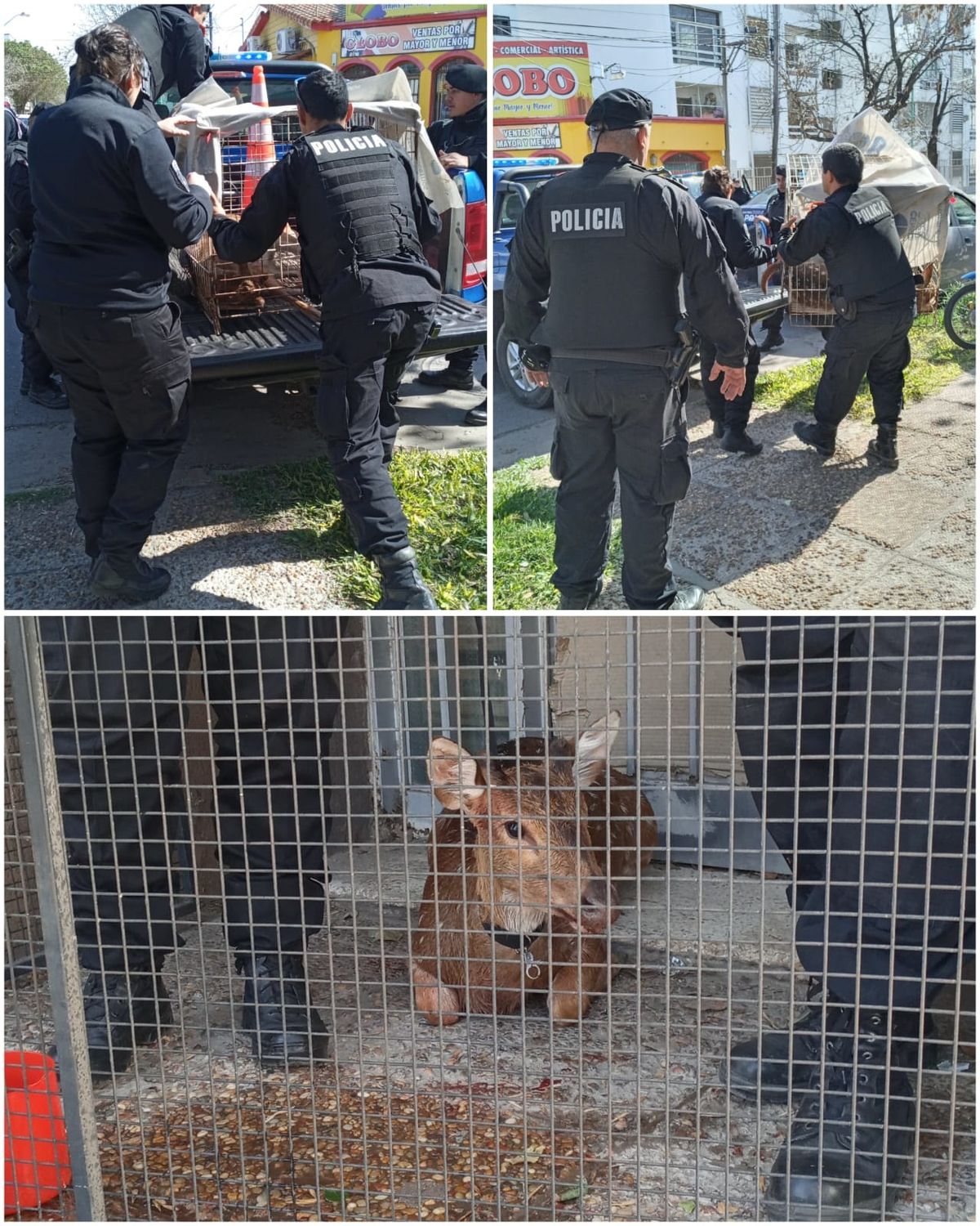 La situación fue avisada alrededor de las 12.30 por los vecinos a la Central de Emergencias 911. Un móvil del Comando Radioeléctrico llegó hasta inmediaciones de las calles Almirante Brown e Iriondo y retuvo al ciervo, que tenía heridas en una de sus patas traseras y la boca, hasta la llegada de efectivos de la Sección Ecológica zona Centro Norte de la Policía Comunitaria.