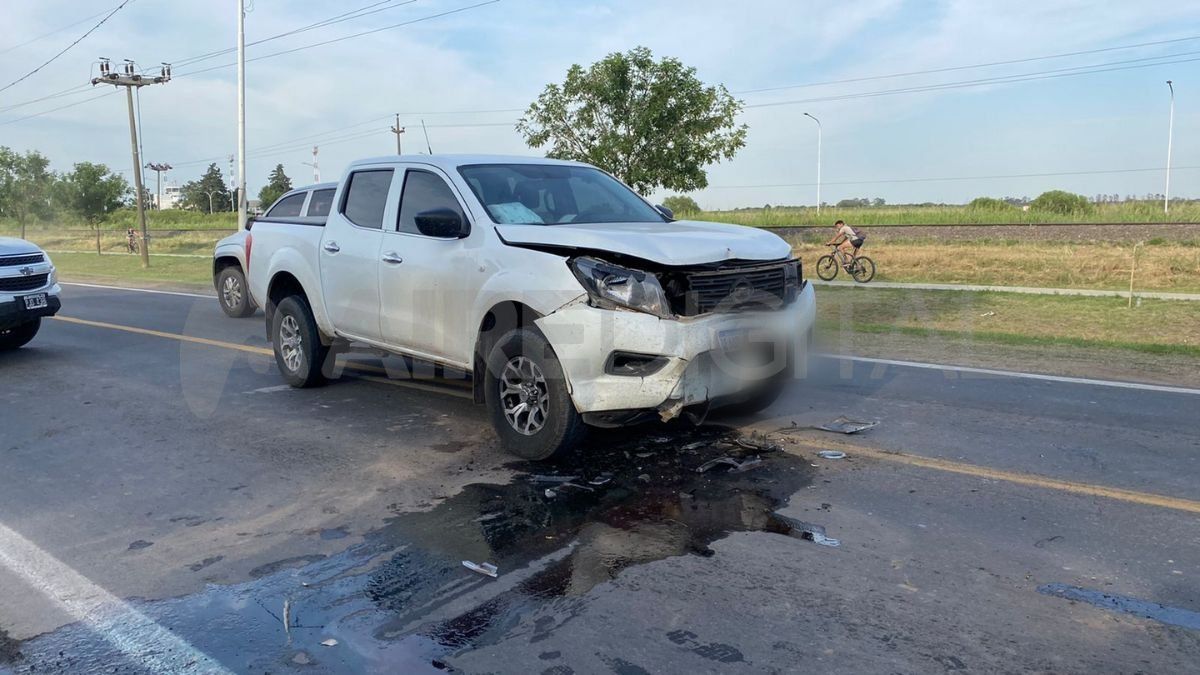 Un impactante choque se produjo sobre la Ruta Nacional 11, a la altura del ingreso al Aeropuerto de Sauce Viejo. Una camioneta Nissan y un auto Renault Clío chocaron de frente. El tránsito se mantuvo restringido en la zona durante unos minutos y luego se normalizó.