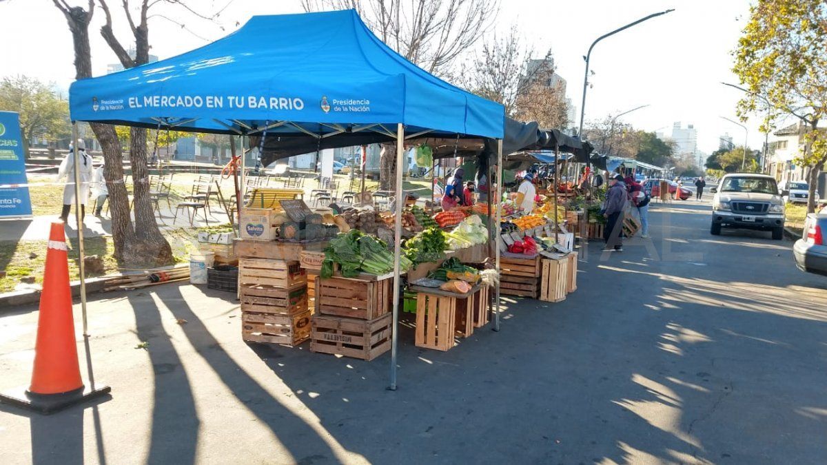 Al lado funciona también la feria "El Mercado en tu Barrio", por lo que los eventos se encuentran divididos mediante cintas para evitar el cruce de clientes y personas a hisopar.