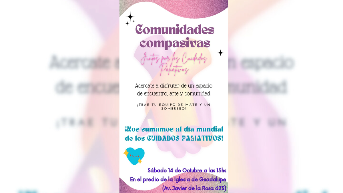 El próximo 8 de octubre se conmemora el día mundial de los Cuidados Paliativos, con el propósito de difundir esta modalidad terapéutica, que aborda la calidad de vida de pacientes con enfermedades crónicas graves y de sus familias. En la ciudad de Santa Fe, un grupo independiente de médicos, enfermeros y pacientes realizarán un evento para que no se pase por alto esta particular fecha. "Comunidades compasivas" será el próximo 14 de octubre a partir de las 15 en la explanada de la Iglesia de Guadalupe.