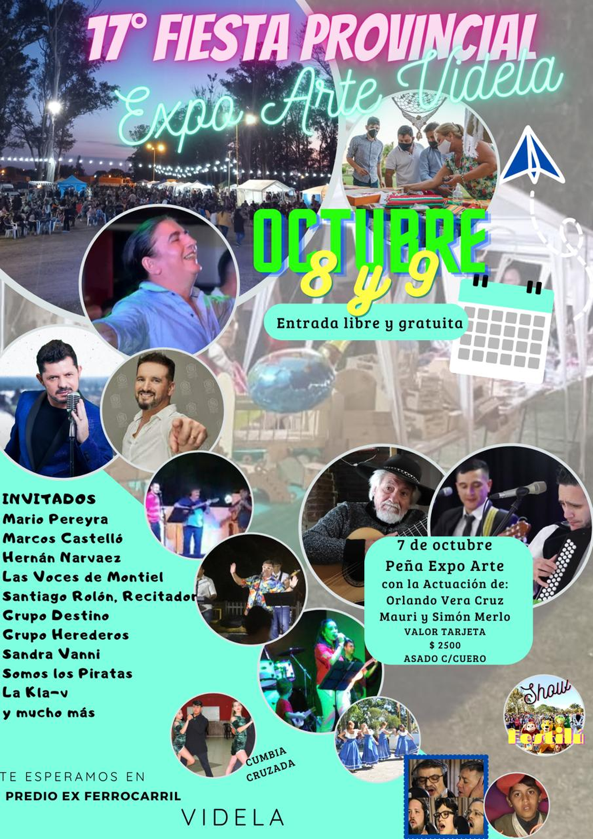 La edición 17 de la Fiesta Provincial de la ExpoArte de Videla vuelve este año los próximos 7, 8 y 9 de octubre, con show de Mario Pereyra, Marcos Castelló y Orlando Vera Cruz, entre otros. Además, habrá una feria de emprendedores locales. María Eva González, presidenta comunal de Videla, le contó a AIRE el cronograma de los eventos y detalló que, en primer lugar, el viernes 7 engalanarán la Fiesta Patronal de Nuestra Señora del Rosario con una peña de danza y música folclórica con show de Orlando Vera Cruz. La tarjeta sale $2.500, el menú es asado con cuero y el 25 de septiembre cierra la venta de cupos para la cena.