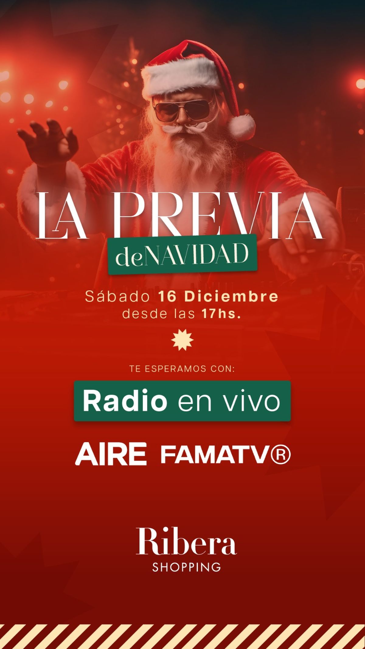 "La previa de la Navidad" se vive este sábado en Ribera Shopping junto a AIRE y FAMA. Con radio en vivo, música, promociones y beneficios, los santafesinos podrán disfrutar de una experiencia de compra totalmente distinta para estas fiestas.
