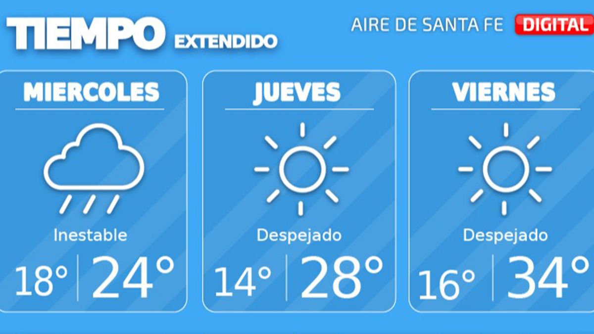 El miércoles se presenta con condiciones nuevamente inestables y con precipitaciones débiles en todo el centro de Santa Fe y algunas tormentas leves en el norte. “Esta situación se prolongará, al menos, durante toda la mañana y comenzaría a mejorar en el transcurso de la tarde”, anticipó Pablo Lucero, especialista en clima de Aire de Santa Fe.