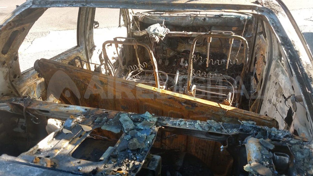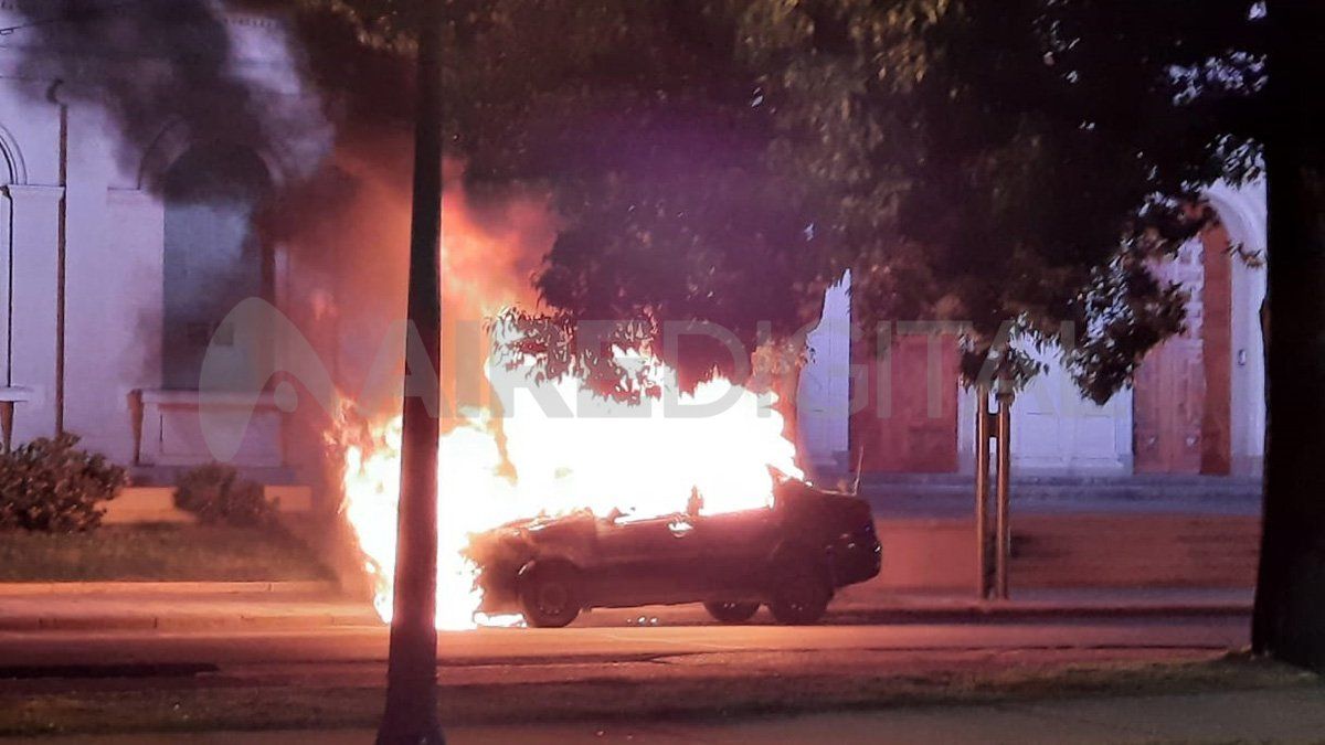 Una vez que se apagó el fuego, el auto fue apartado de la cinta asfáltica y permanece estacionado en una de las dársenas frente al rectorado de la Universidad Nacional del Litoral.