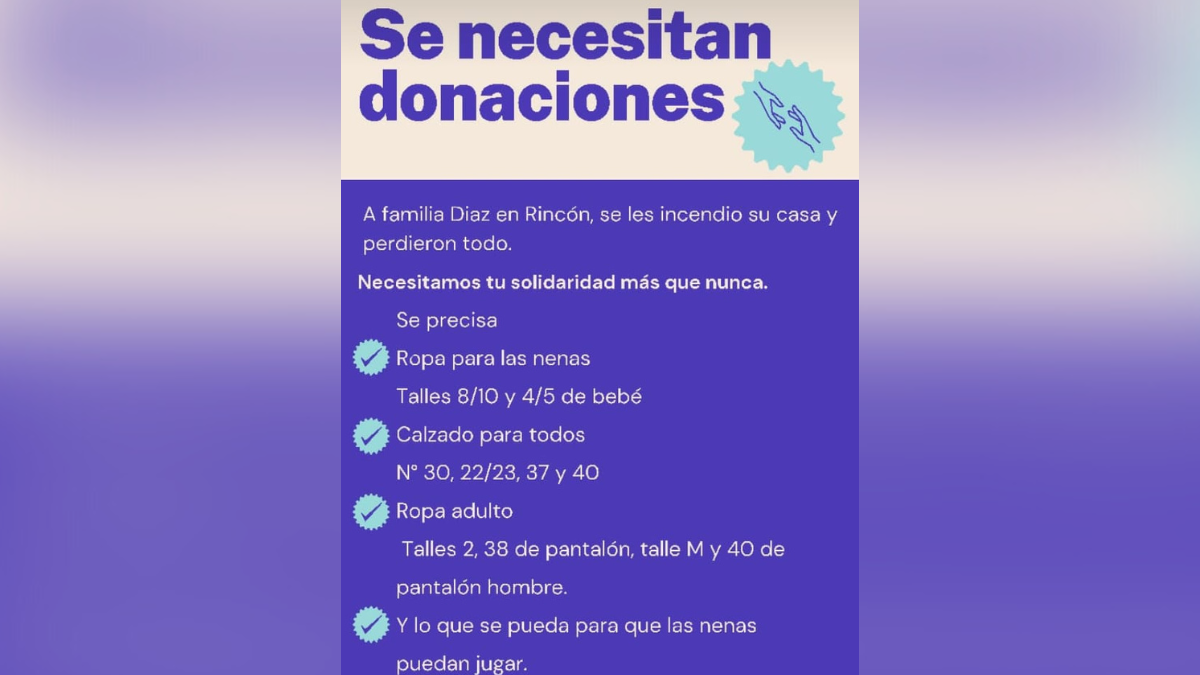Una familia de Rincón perdió todos sus bienes luego de que la casa en la que vivían se incendiara por completo. En diálogo con AIRE pidieron la colaboración de todos para salir adelante. La familia de Florencia está compuesta por su marido y sus dos hijas de tres y ocho años.