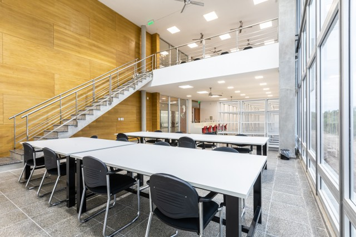 Su tipología de doble peine le otorga gran rendimiento de uso y permite que la totalidad de los espacios estén en contacto con los exteriores, garantizando su iluminación y ventilación natural en un entorno de máxima calidad ambiental, lo que redunda en un balance positivo de confort y ahorro energético. La tectónica del edificio pone en valor la estructura y la utilización de materiales nobles de la región, confiriéndole un lenguaje contemporáneo.