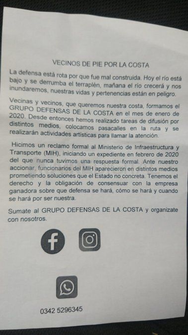 Y siguió: "En este sector se hizo el terraplén. En el 2008 se hizo el sistema de estacas que se rompió y dos años después volvieron a hacerlo. Ya dos veces se hizo una obra que costó muchísimo dinero y que no dio solución. Es lo que hoy nuevamente está roto. El sistema estable estaca, que está acá, en la toma de agua, y el Río Colastiné y Ubajai que se unen acá (en donde se manifestaron), generan un volumen y una fuerza muy importante, hace un codo, pega con mucha energía, y por eso este sector es el más débil. Hay que ponerle siempre todas las miradas", sostuvo Machado.