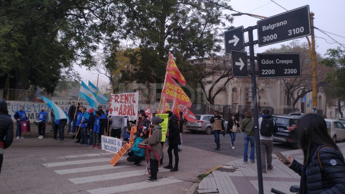 Los trabajadores despedidos por la empresa Artes Gráficas del Litoral (AGL) se manifestaron este viernes frente al Ministerio de Trabajo de Santa Fe, en calle Crespo, e interrumpieron durante unos minutos el tránsito. Son empleados de la planta de impresión ubicada en el Parque Industrial, que es propiedad de los diarios El Litoral y Clarín. Piden la reincorporación de 18 empleados de los 21 cesanteados.