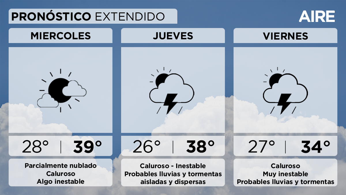 Miércoles: calor sostenido con posibles lluvias aisladas