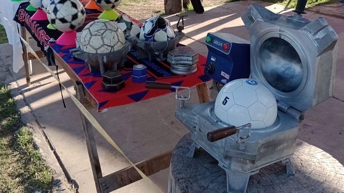 “Ya estamos trabajando porque tenemos pedidos de pelotas. El viernes a la tarde es la inauguración de la mini fábrica”, destaca entusiasmado Montes. El espacio cuenta con todo el equipamiento necesario para la fabricación, desde una máquina para cortar hasta una plancha para marcar los gajos y una impresora para estampar los nombres. Hoy la fábrica posee tres moldes para elaborar pelotas de fútbol N°5 y 1, y están en tratativas para conseguir el número 4.