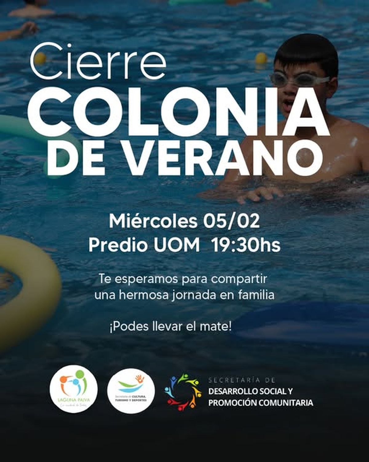 El próximo miércoles 5 de febrero se realizará el cierre de la Colonia de Verano 2025 de Laguna Paiva. Será desde las 19.30 en el Predio UOM y es una invitación para disfrutar juntos de una hermosa jornada en familia.