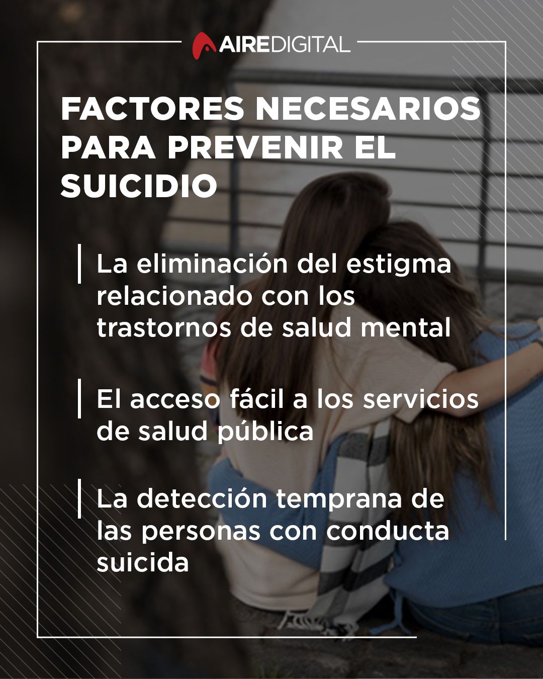 El suicidio es un problema complejo, en el que intervienen factores psicológicos, sociales, biológicos, culturales y ambientales que aumentan la vulnerabilidad de una persona al comportamiento suicida. Pero lo fundamental es tener en cuenta que una gran parte de los suicidios se pueden prevenir y que existen intervenciones eficaces para hacerlo. Por ejemplo, se estima que la mayoría de las personas que mueren por suicidio interactúan con un proveedor de atención primaria de la salud un mes antes de su muerte. Por eso, la eliminación del estigma relacionado con trastornos de salud mental, el acceso fácil a los servicios de salud, la detección temprana de las personas con conducta suicida y un manejo efectivo del sistema de salud son fundamentales para que reciban a tiempo la atención que necesitan.