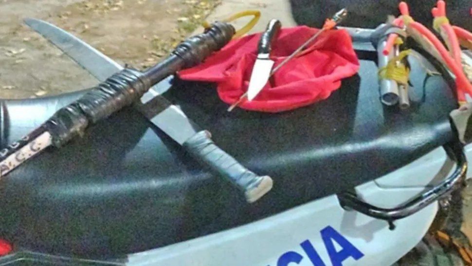 La Policía agregó que se llegaron a efectuar algunos disparos en inmediaciones de la plaza, donde había niños y familias disfrutando del lugar, en donde no se tuvo que lamentar ningún herido. Los policías identificaron a dos jóvenes de 20 y 21 años, de apellidos Andrada y Roldán, quienes tenían en su poder un cuchillo de una hoja de 17 centímetros, y una tumbera y un machete, respectivamente.