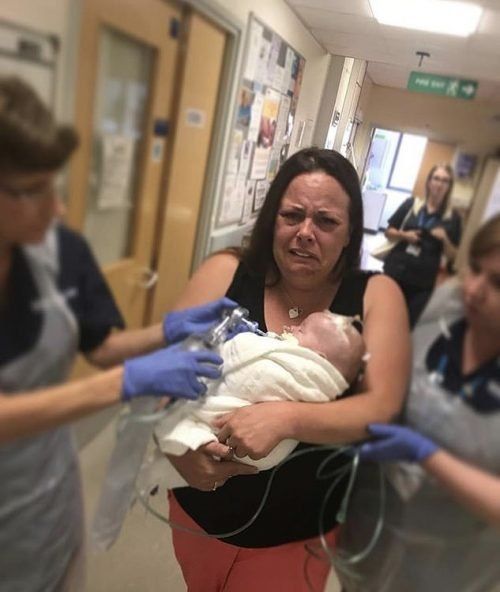 Las imágenes en cuestión, que tanto han conmovido a todos en las redes, muestran el momento en que Tammy cargaba a su pequeño por el pasillo del hospital, poco antes de ser desconectado de soporte vital.