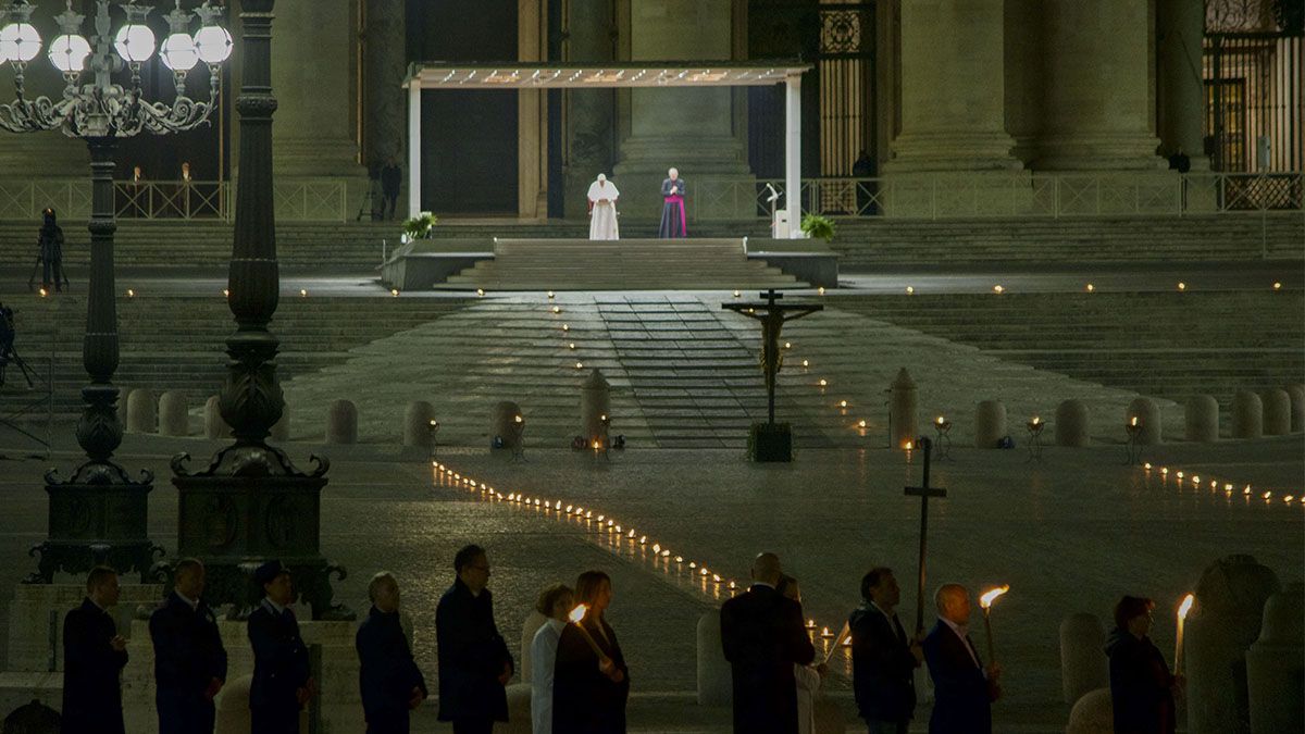 Con rostro notablemente compungido, Francisco encabezó la celebración frente al crucifijo que según la tradición católica salvó a Roma de la peste del siglo XVI y al que el pontífice le encomendó el fin de la pandemia. La cruz simbólica de la celebración, que fue cargada en estaciones dispuestas alrededor del obelisco de la Plaza San Pedro y en las escalinatas que llevan hacia la Basílica, fue llevada por dos grupos de cinco personas, uno de la prisión que se encargó de escribir las meditaciones y el otro de enfermeros y médicos del Vaticano, en un homenaje del Papa al personal hospitalario que pelea contra la pandemia.