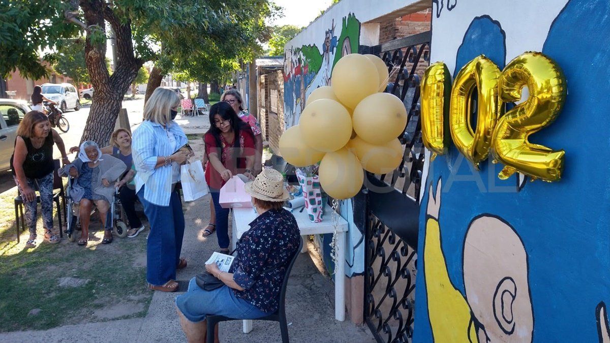 La vereda de la vivienda de Otilia, ubicada en barrio Santa Rosa de Lima, se colmó de visitantes que llegaron para felicitar y acompañar a la agasajada. En el mural que cubre el frente de la casa puede verse la figura de Otilia cargando a un niño y se lee la frase que la mujer inmortalizó: "La lucha que se pierde es la que se abandona".