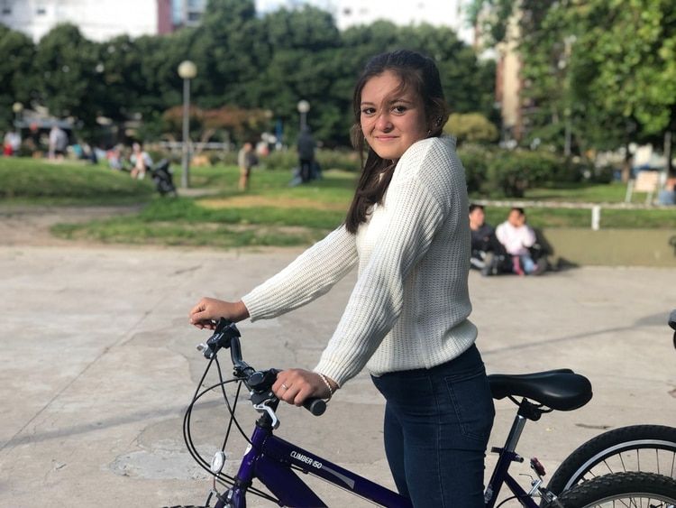 Cami llegó a Plaza Mitre de Mar del Plata junto a Diego, su novio, los dos en bicicleta. La de ella se la regaló él este mismo mes para su cumpleaños número 18 y desde ese día cada vez que pueden comparten salidas en dos ruedas. El encuentro con Infobae no es la excepción.