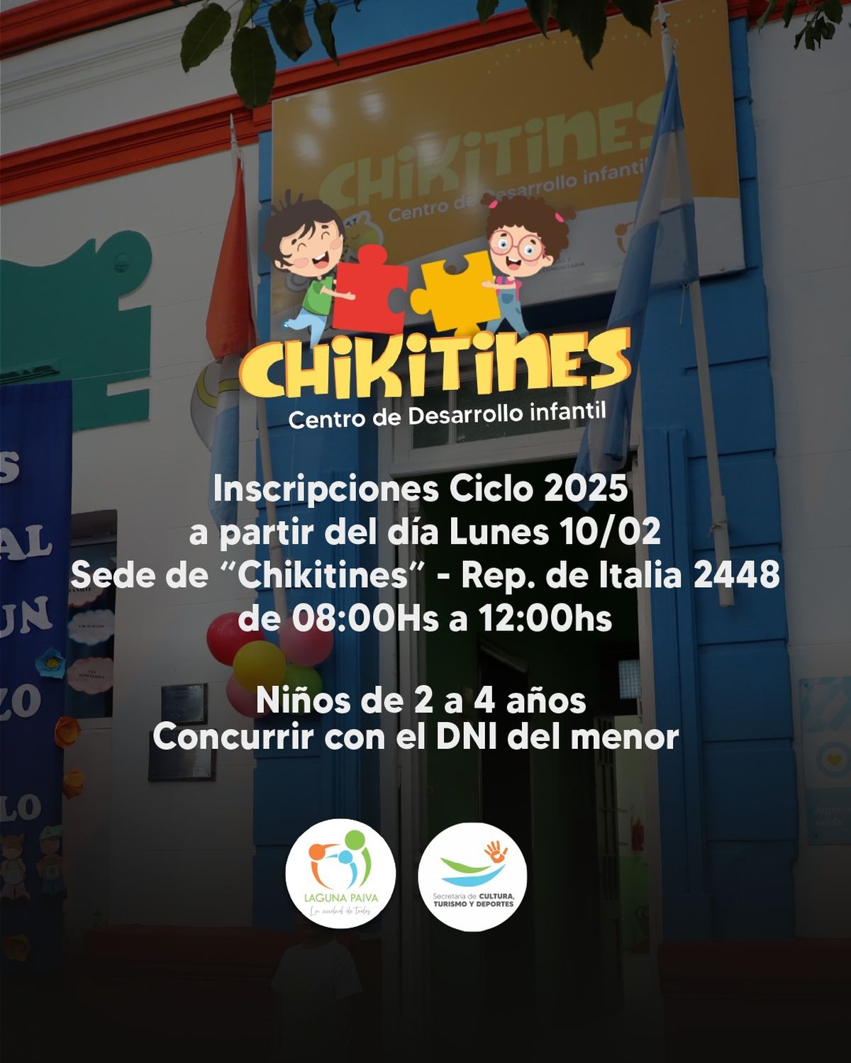 La Municipalidad de Laguna Paiva anunció que desde el lunes 10 de febrero estarán abiertas las inscripciones para el Centro de Desarrollo Infantil (CDI) “Chikitines”. Este espacio está pensado para que niños y niñas de 2, 3 y 4 años puedan crecer en un entorno saludable mientras sus padres y madres trabajan o estudian.