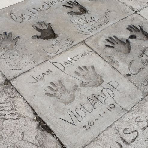 Allí hay una especial de “paseo de la fama”, en dónde en baldosas están los nombres de distintos famosos del país acompañados de las manos y firma de cada uno de ellos. La de Juan Darthés fue puesta el 26 de enero de 2010, tal como figura ahí. Por aquellos años, fue su consagración como galán de telenovelas.