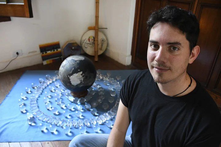 De Stefano está sentado en un sillón de la Fundación Arsayan, que creó en 2015 y cuya única sede está en Venado Tuerto. Tiene el pelo corto, la barba prolija. Los ojos verdes profundos. Remera negra y jeans. Botas marrones, sin medias. El perfil de cualquier joven que un rato más tarde se encontrará con amigos o disfrutará de la música en un boliche bailable. Alrededor de él globos terráqueos, la Cruz del Sur invertida, el cuadro de una diosa que representa la energía de la tierra.
