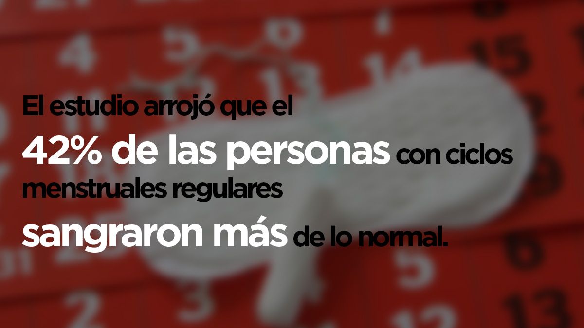 El estudio arrojó que el 42% de las personas con ciclos menstruales regulares sangraron más de lo normal, mientras que el 44% no reportaron cambios después de ser vacunadas, detallaron las autoras.