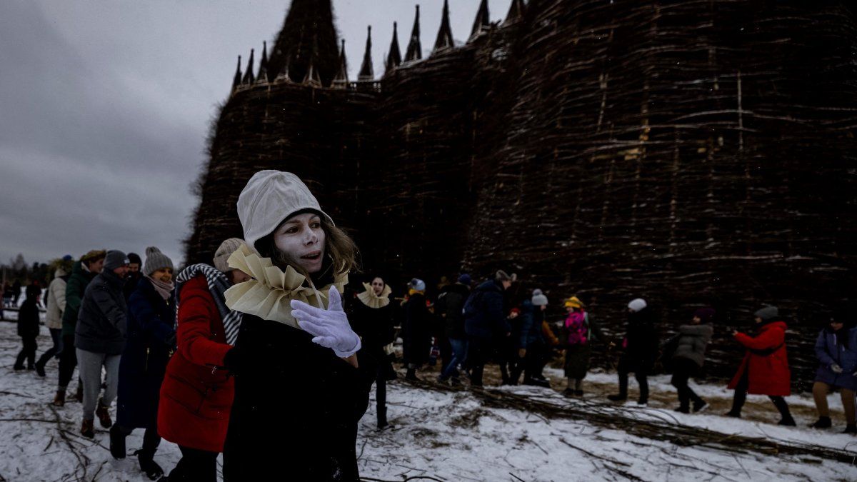 Rusia vuelve a protagonizar un suceso que se volvió viral en las redes sociales. Impresionados muchos usuarios por las imágenes, se trata realmente de una instalación fabricada para celebrar la Máslenitsa. Con 24 metros de altura, el castillo está fabricado con enredaderas y heno.